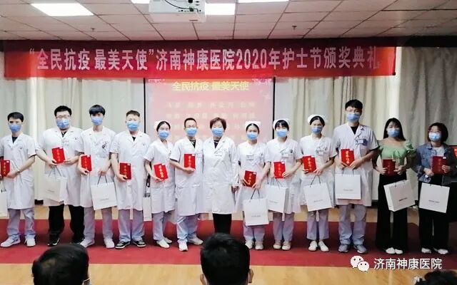在第109个国际护士节来临之际,5月11日下午,济南神康医院举办了举行抗疫先锋表彰暨护士节庆祝大会。会上,对16名疫情奉献天使、6名先进护理工作者进行了表彰。